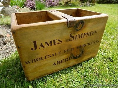 Title (ebay affiliate link): ANTIQUE STYLE WOODEN FISHMONGERS PRAWN BOX CRATE TRUG ABERDEEN SCOTLAND