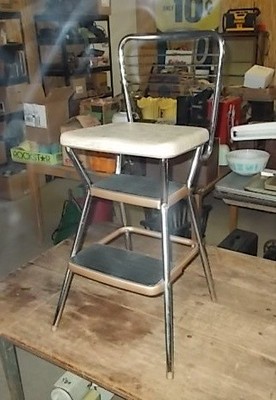 Title (ebay affiliate link): Vintage Retro BROWN CREAM Cosco Kitchen Chair Stool Flip UP Seat Chrome*