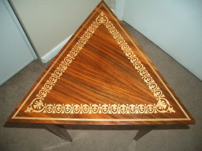 Title (ebay affiliate link): Vintage Inlaid Triangle Wood Wooden Italian End Side Corner Desk Table