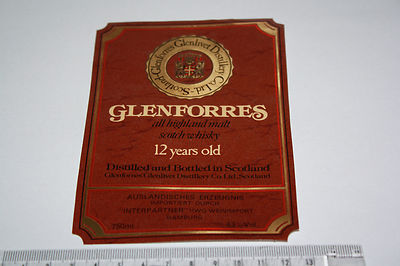 GLENFORRES GLENLIVET 12 YO HIGHLAND MALT SCOTCH WHISKY LABEL GERMAN IMPORT