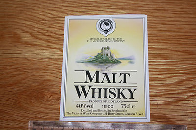 Title (ebay affiliate link): MALT WHISKY LABEL DISTILLED & BOTTLED FOR THE VICTORIA WINE COMPANY