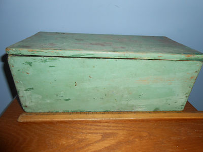 EARLY PRIMITIVE BOX-OLD GREEN PAINT LAYERS-TAKE A LOOK