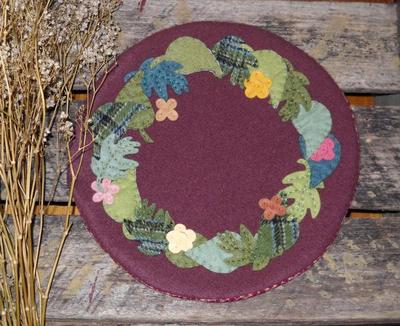 Primitive Felted Wool LEAVES & Tiny Flowers Penny Rug ~ Wool Felt Candle Mat