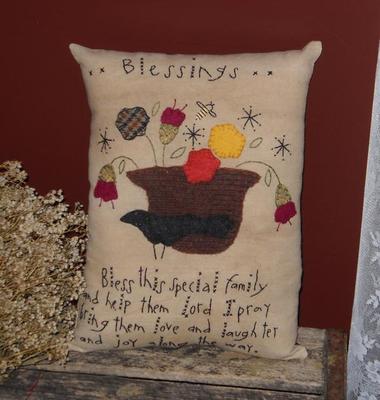 Large Primitive "Bless This Special Family" Felted Penny Rug Stitchery Pillow