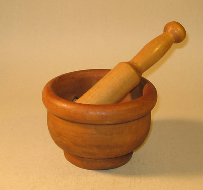 ★ NICE ANTIQUE WOOD PESSLE AND MORTAR ★