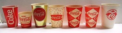 Title (ebay affiliate link): 8 pc Coca Cola Coke wax paper etc. cup glass set Drink Fountain oz. 50's - 70's