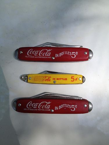 Title (ebay affiliate link): 3 Vintage Coca Cola Knives Two Double Blade/ One Single Blade