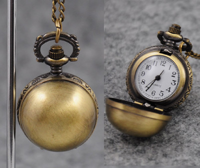 Title (ebay affiliate link): Antique Polished Bronze Ball Steampunk Clock Pocket Watch Necklace Chain