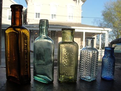 Title (ebay affiliate link): Mold Blown 1800s Colored Bottle Lot Of Five Assorted Antique Bottles