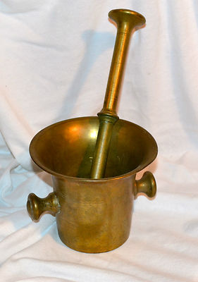 Antique Brass Mortar and Pestle Apothemcary Pharmacy Drug Store