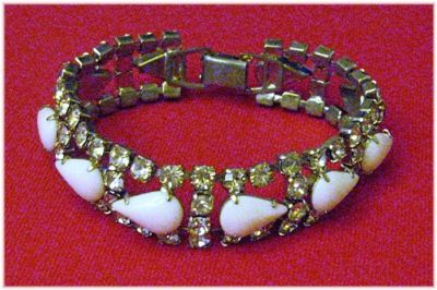 GORGEOUS RHINESTONE and MILK GLASS BRACELET