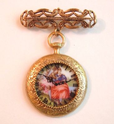 Title (ebay affiliate link): VINTAGE BROOCH FAUX POCKET WATCH MILK GLASS CAMEO PIN