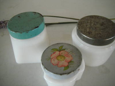 Vintage Lot of (3) Milk Glass Vanity Jars-Cosmetic-Avon