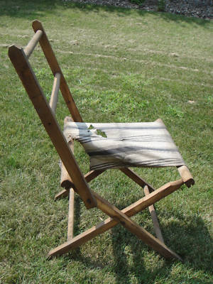 ANTIQUE FOLDING CHAIR CANVAS WOOD PRIMITIVE SEAT