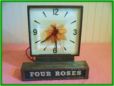 ANTIQUE~METAL~FOUR~ROSES~WHISKY~DISPLAY~LIGHT~CLOCK