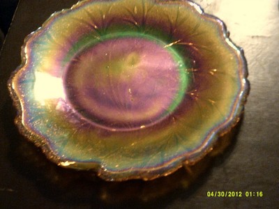 Title (ebay affiliate link): Carnival Depression Glass Pebble Leaf Marigold Lunch 10 inch
