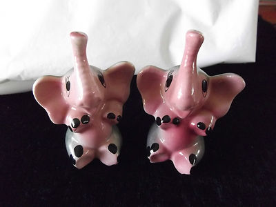 Title (ebay affiliate link): VINTAGE Pair PINK & GREY ELEPHANT ceramic porcelain handpaint F W WOOLWORTH CO