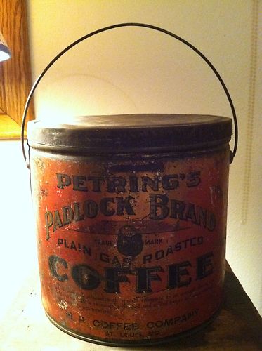 Title (ebay affiliate link): Primitive Antique Petring's Padlock Brand Coffee Tin St. Louis Missouri