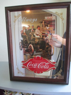 Title (ebay affiliate link): COCA-COLA 1939 Cardboard Poster, Wooden Frame, & Antique Mirror Poster