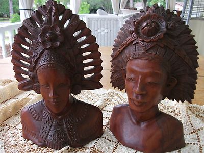 Title (ebay affiliate link): vintage 1940 era carved wood pair busts man & woman Indonesia ? estate find