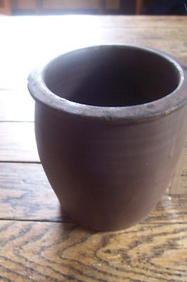 Vintage small earthen crock, 5 1/2 in. high by 5 in dia