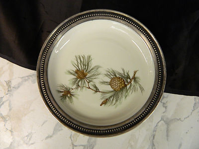 Vintage ROSENTHAL PORCELAIN & STERLING SMALL DISH PINECONES /Selb Germany/5.75in