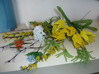 Title (ebay affiliate link): ANTIQUE VICTORIAN FRENCH GLASS BEADED FLOWERS TULIPS PUSSY WILLOWS & MORE NR