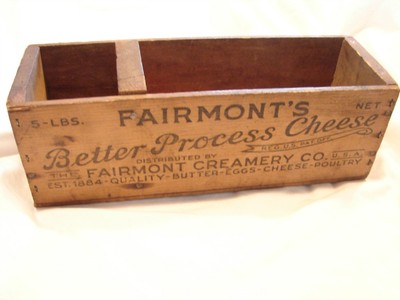 Title (ebay affiliate link): Antique Wood Cheese Box. Fairmont Creamery Est. 1884. Primitive Decor. Nice!