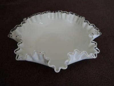 Fenton Dbl Crimped Silver Crest Milk Glass Serving Bowl