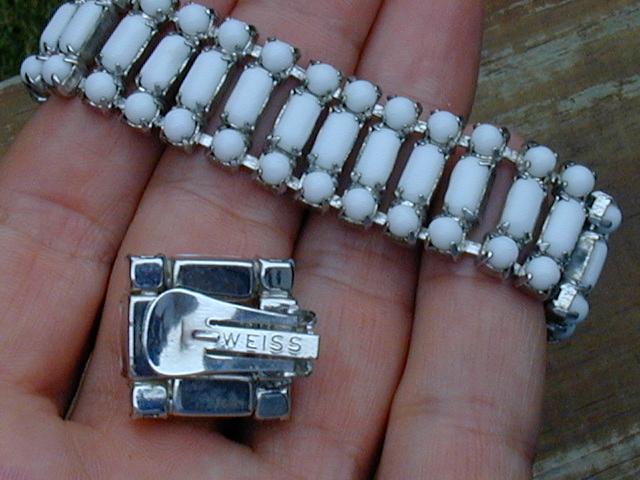 VINTAGE bracelet MILK GLASS rhinestone WEISS old ESTATE