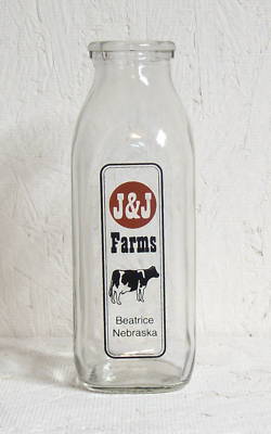 VINTAGE J&J FARMS - BEATRICE NEBRASKA GLASS MILK BOTTLE