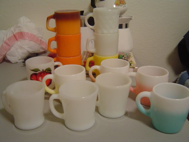 LOT 13 VTG Milk Glass MUGS Fire King WHITE D-Handle
