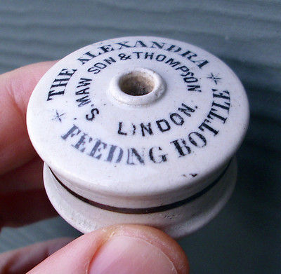Title (ebay affiliate link): Antique, ceramic,1890's English, advertise printed, baby feeder cap lid