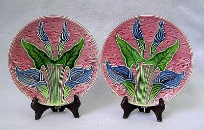 An Unusual Pair of Antique German/Austrian Majolica Plates w/ Lillies......L@@K!