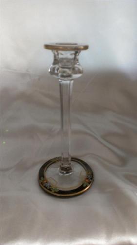 Vintage Glass Candlestick Black Painted Base Flowers 8"