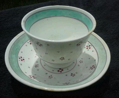Antique Soft Paste Sprig Hand Painted Handless Cup Saucer