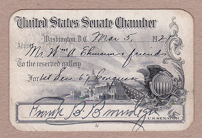 Title (ebay affiliate link): 1921 SENATE GALLERY PASS FROM SEN. FRANK B BRANDEGEE CONNECTICUT SENATOR