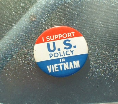Title (ebay affiliate link): Vintage 1960s I Support US Policy in Vietnam Red, White & Blue Pinback Button