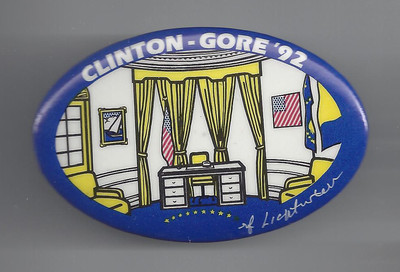 Title (ebay affiliate link): SCARCE 1992 CLINTON & GORE LIECHTENSTEIN OVAL OFFICE DESIGN CAMPAIGN BUTTON