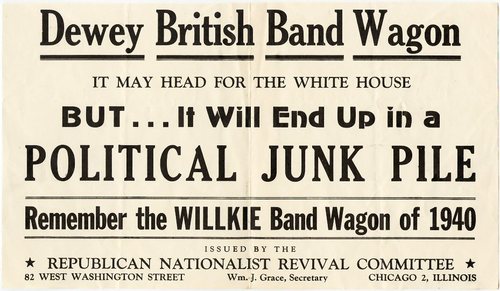 Title (ebay affiliate link): Vintage Political Flyer, Dewey British Band Wagon, Political Junk Pile, 1944