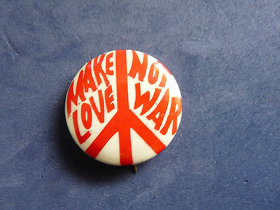 Title (ebay affiliate link): Vintage 60's Vietnam protest pinback "Make Love Not War" Peace Sign