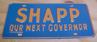 Vintage metal license plate Democrat party Shapp our next governor Pennsylvania