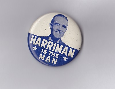 Title (ebay affiliate link): Campaign Button 1952 W AVERELL HARRIMAN for President "Harriman is the Man" pic