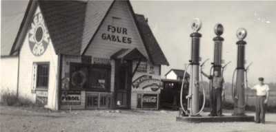 Old Gas Station Snapshot Photo 4 GABLES AMOCO, Nehi Coke Adv, Glass Globe Pumps