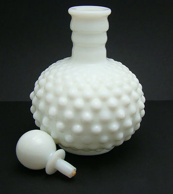 Vintage Hobnail White Milk Glass Decanter with Stopper