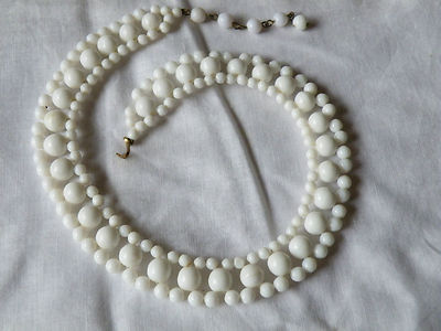 VINTAGE WHITE (MILK) GLASS BEAD NECKLACE CHOKER 16"