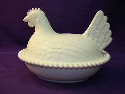 Title (ebay affiliate link): INDIANA MILK GLASS HEN / CHICKEN ON NEST BEADED EDGE CANDY / BUTTER DISH