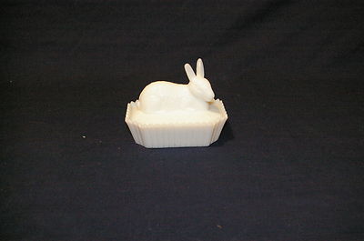 VINTAGE MILK GLASS RABBIT COVERED DISH WHITE EAPG MINT NR