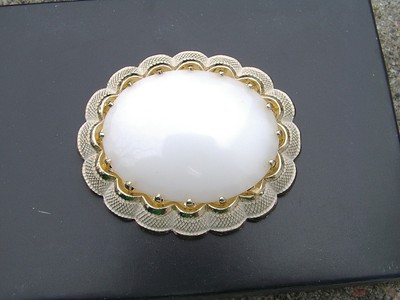 Vintage Beautiful Milk glass white enamel BROOCH pin