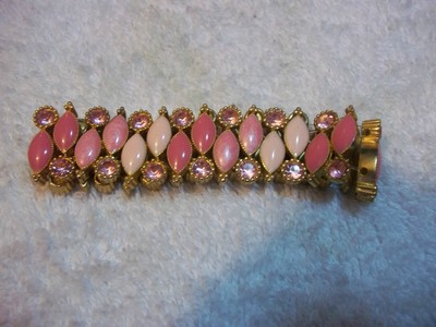 Title (ebay affiliate link): pink rhinestone and milk glass vintage costume antique bracelet